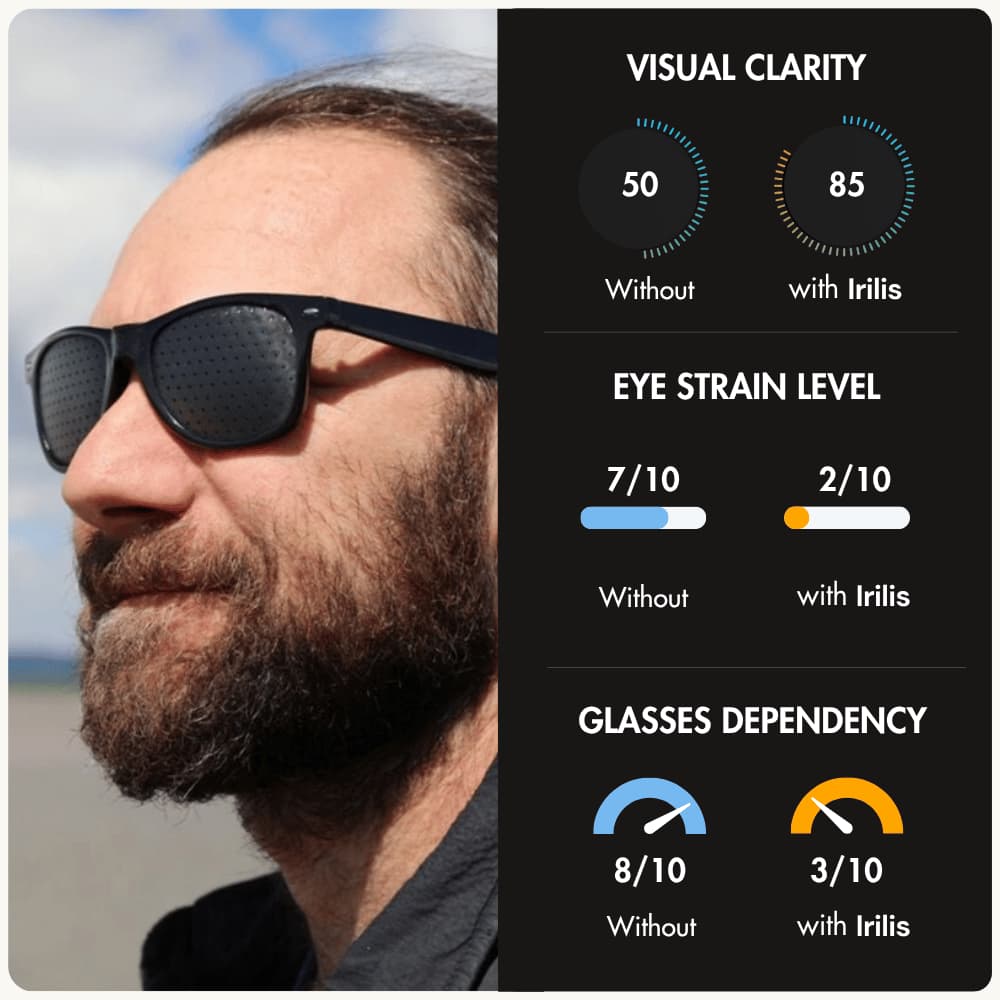 "Break free from constant glasses — Irilis retrains your eyes naturally, so you regain sharp vision and daily confidence without surgery or heavy lenses."